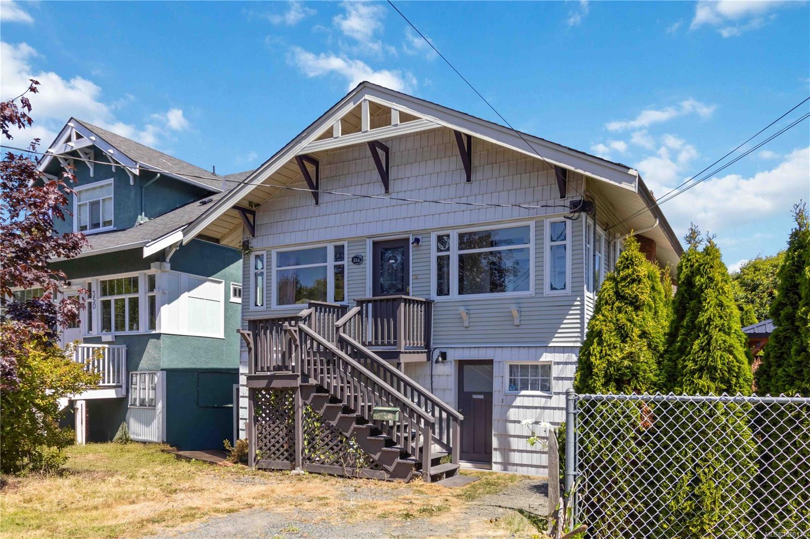 Set on a quiet no-through street in the heart of vibrant James Bay, this charming character home offers an unbeatable lifestyle just steps from beaches, the Breakwater, Dallas Road waterfront, Fisherman's Wharf & all the amenities of James Bay Village. Enjoy the best of walkable living in one of Victoria’s most sought-after neighbourhoods. The bright main level features original oak floors, ceilings w/crown molding & recessed lighting. Stay comfortable year-round w/a gas furnace & heat pump splits offering efficient heating & A/C. The layout includes a sunny eat-in kitchen, spacious living room w/electric fireplace, two generous bdrms, a 4-pc bath & a welcoming sunroom at the entry. Downstairs offers excellent flexibility w/a large bdrm w/French doors to the private backyard patio, a laundry area, flex space w/French doors,3 pc bath PLUS a self-contained 2-bdrm (or 1-bed + den) in-law suite w/ 4-pc bath perfect as a mortgage helper. A lovely home in a fantastic & scenic location.