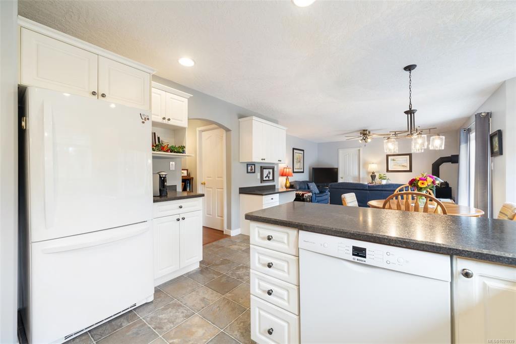 This spacious 5-bedroom, 4-bath family home offers exceptional flexibility in a sunny, sought-after location. Situated on a quiet, family-friendly street, the setting is ideal for children, entertaining, and everyday living. The home features vaulted ceilings, a gas fireplace in the living room, and a cozy family room with woodstove. The functional kitchen has great flow to the main living areas. A one-bedroom suite located above the double garage provides excellent space for extended family or added income. Additional highlights include crawlspace storage, sewer connection, and a fully landscaped 1/4 acre lot ( approx) Located near the new North Langford Elementary School and just minutes to all Royal Bay amenities. Walk to Red Barn! Bareland strata is for road and is exceptionally well run! Don't miss your opportunity in this established neighborhood.